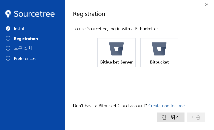 비트버킷 서버는 사용하지 않으므로 오른쪽 바구니 아이콘을 눌러 설치를 완료한다.