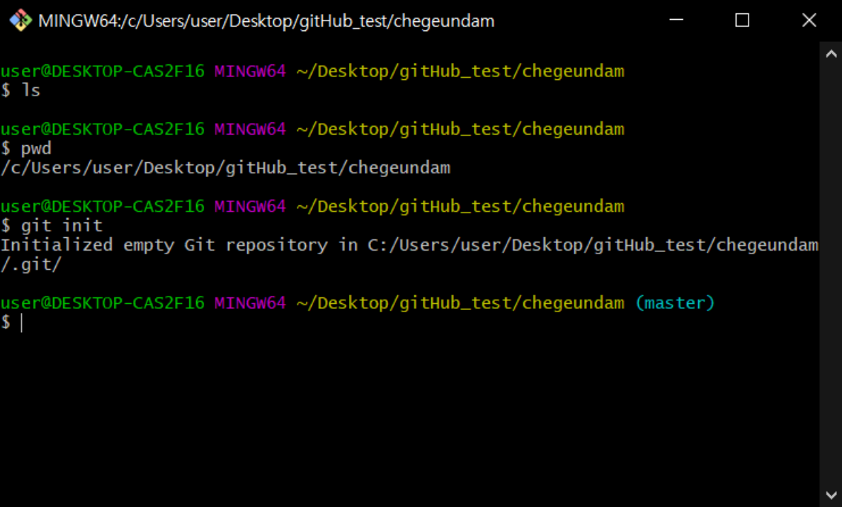 나의 경우는 Test 용 폴더 내의 채근담 폴더를 로컬 저장소로 지정하였다.