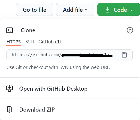 GitHub 에서 원격저장소로 이용하려는 Repository 에 들어가면 초록색 Code 버튼을 볼 수 있다